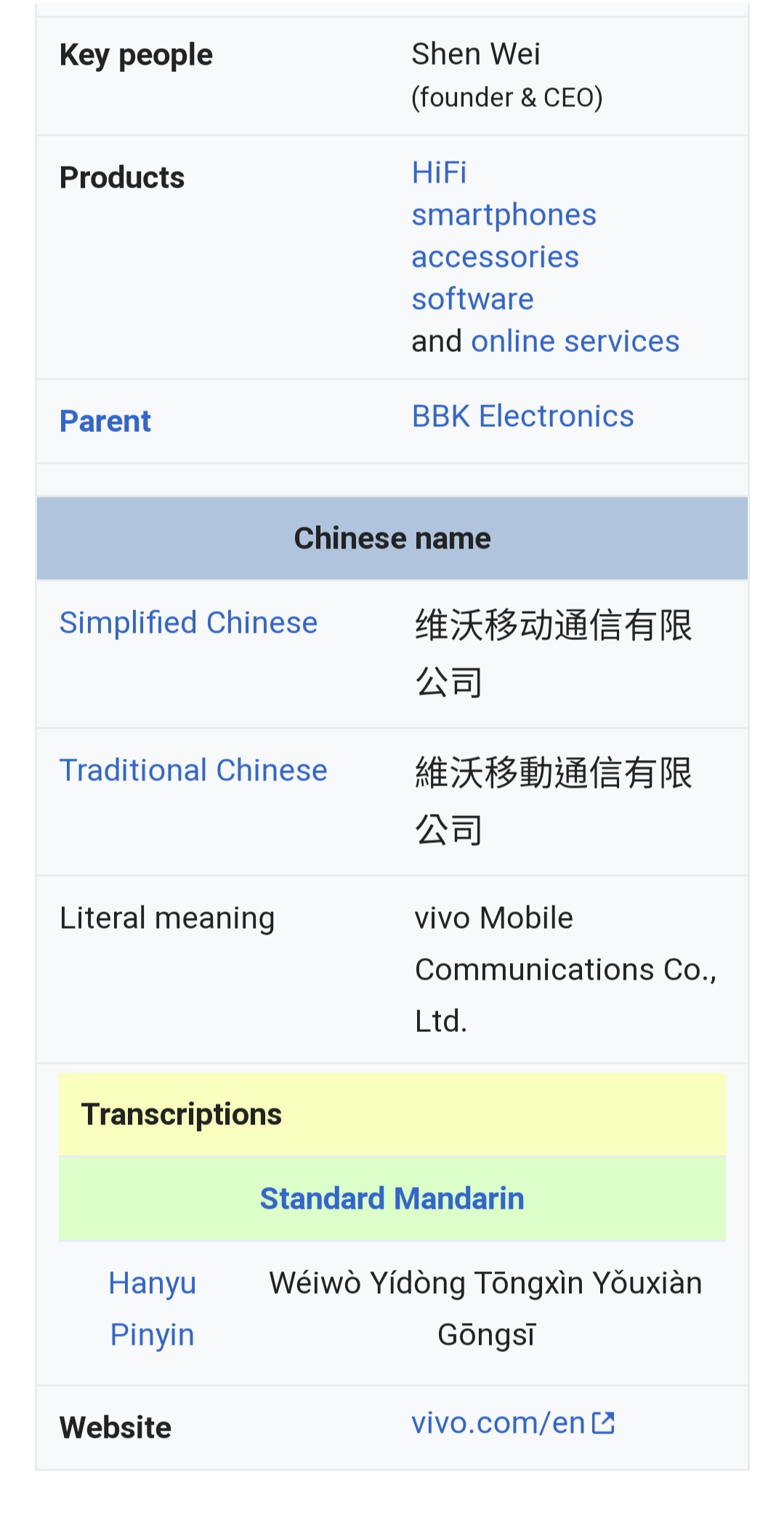 Vivo Communication Technology Co. Ltd. is a Chinese technology company owned by BBK Electronics that designs and manufactures smartphones and smartphone accessories in China, software and online services. BBK Electronics also owns Oppo, Realme and OnePlus. The company develops software for its phones, distributed through its vivo App Store, with iManager included in their proprietary, Android-based operating system, Funtouch OS.